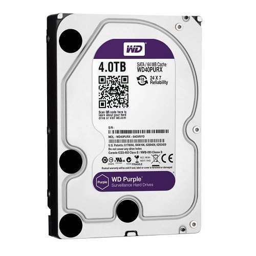 HDD WESTERN PURPLE 4TB WD40PURZ chuyên dụng với nhiều thiết bị ghi hình số, đầu ghi của các hệ thống giám sát DVR, SDVR, NVR với 64 camera đồng thời, yêu cầu cao về chất lượng hình ảnh.